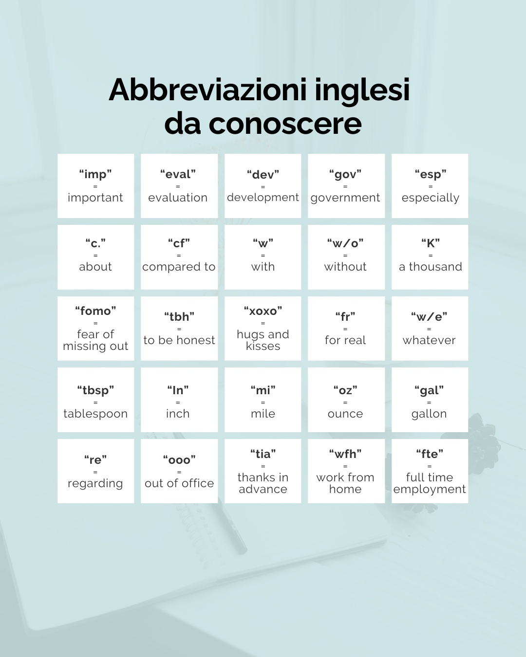Tenetevi forte, sta per arrivare il nostro “David”, “Gioiello”: una tabella con le principali abbreviazioni inglesi da conoscere