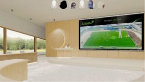 Qui io che illustro il Sistema AZIENDA+ dal mio maxi schermo virtuale.